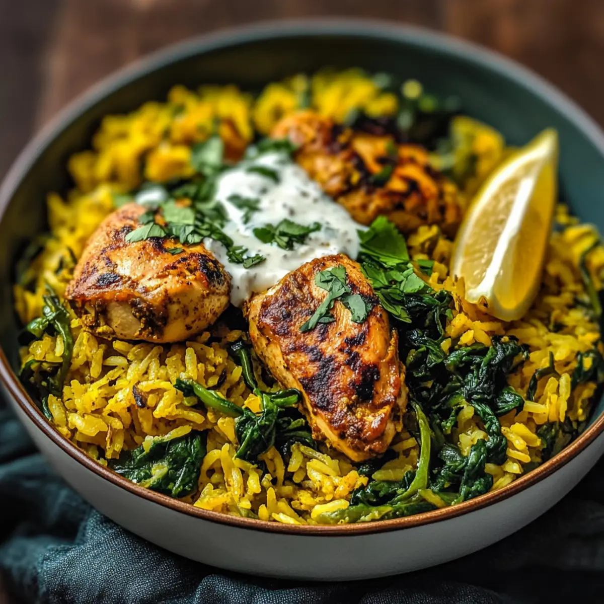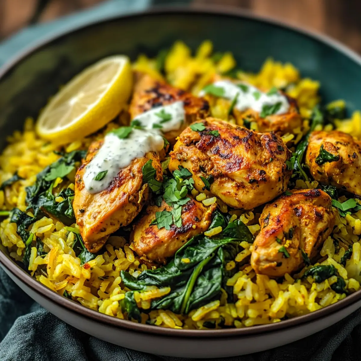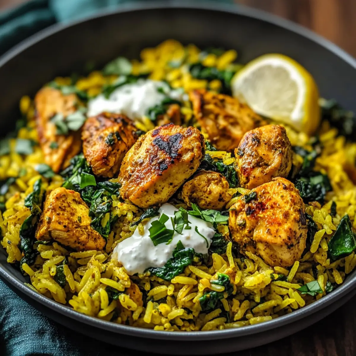 Squeeze the juice of 1 lemon over the completed dish and give it a gentle stir to combine. Adjust the seasoning with additional salt or pepper if desired. The bright acidity of the lemon will elevate the flavors, making your Anti-Inflammatory Turmeric Chicken & Rice even more delicious and refreshing. Serve hot, topped with Greek yogurt if you wish for a creamy finish.