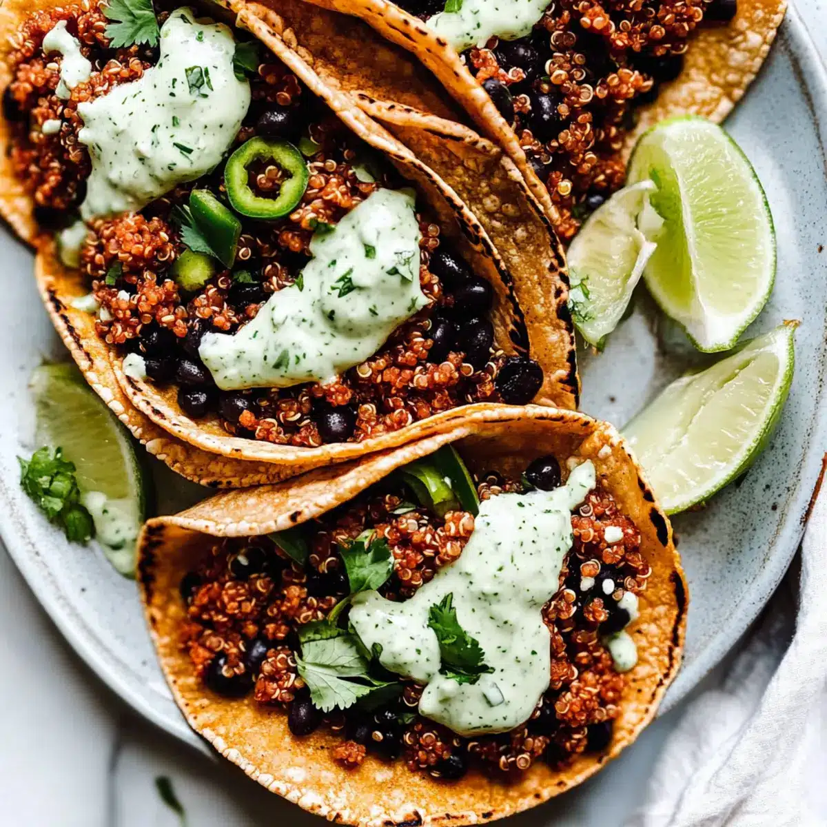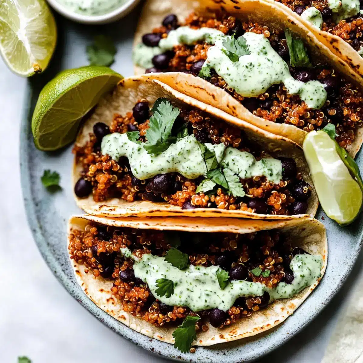 These Black Bean Quinoa Tacos are perfect for meal prep enthusiasts looking to save time during busy weeknights! You can prepare the quinoa and black bean filling up to 3 days in advance. Simply cook the filling according to the instructions, then allow it to cool before transferring it to an airtight container for refrigeration. The key to maintaining quality is to keep the filling separate from the taco shells until serving to avoid sogginess. When ready to enjoy, just reheat the filling in a skillet or microwave until warmed through, then assemble your tacos with the fresh cilantro lime crema and any desired toppings. Enjoy a delicious, homemade meal with minimal effort!
