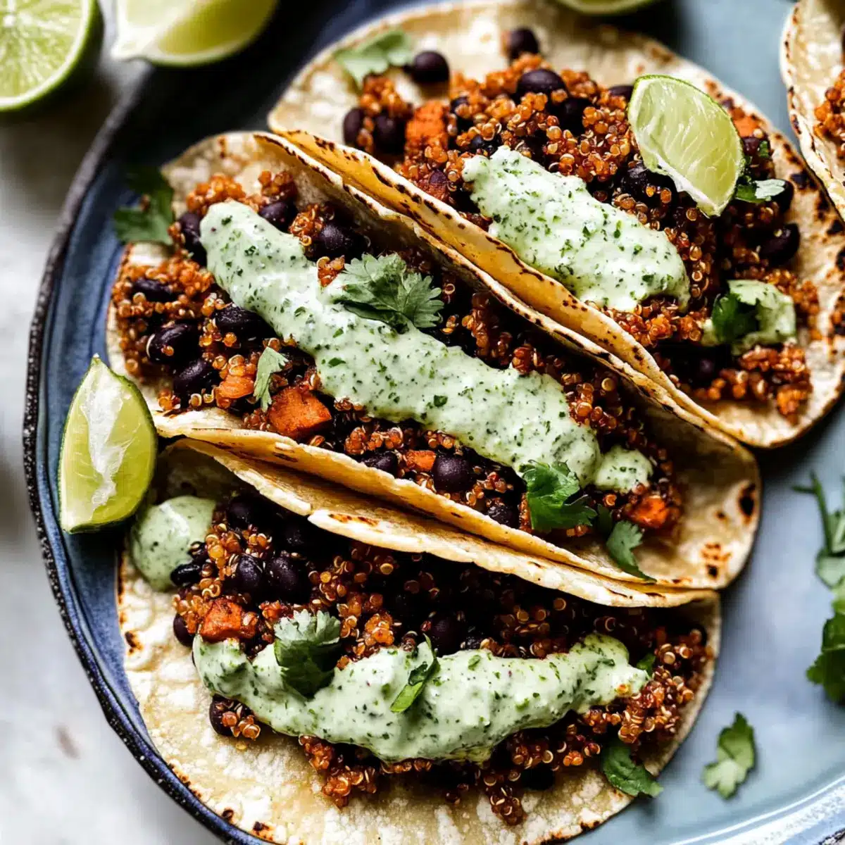 As I rummaged through my pantry on a busy weeknight, I stumbled upon a rainbow of ingredients just waiting to come together. That’s when I decided to whip up my 30-Minute Quinoa Black Bean Tacos with Cilantro Lime Crema, a recipe that effortlessly balances flavor and nutrition. Perfect for anyone craving a wholesome meal that doesn’t skimp on taste, these tacos are vegan, gluten-free, and quick to assemble—all made in just one skillet! The hearty blend of quinoa and black beans provides a satisfying meatiness, while the fresh cilantro lime crema adds a zingy touch that will keep everyone coming back for more. Isn’t it time we traded in takeout for something more homemade? Come explore how easy it is to create a taco night that’s both delicious and nourishing!