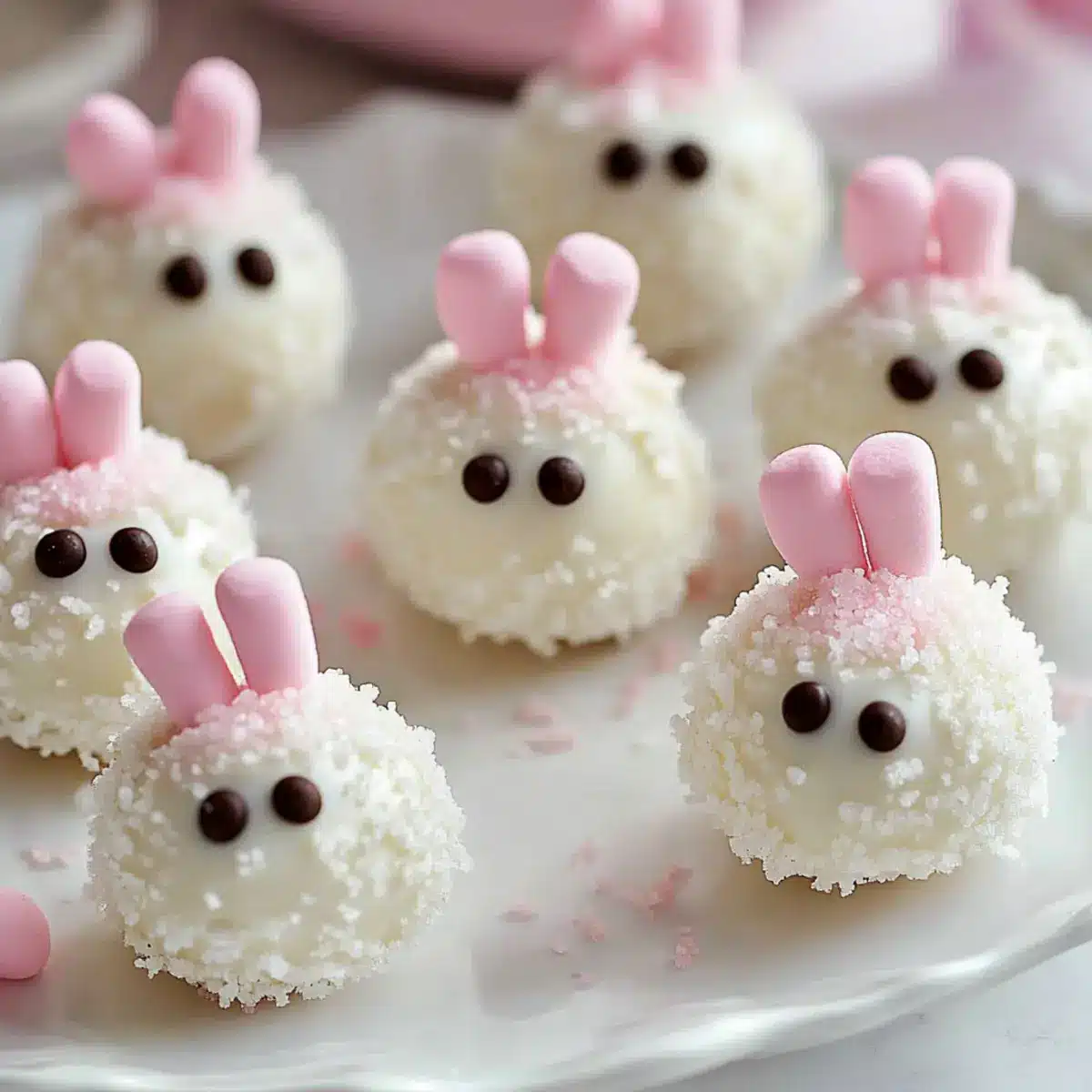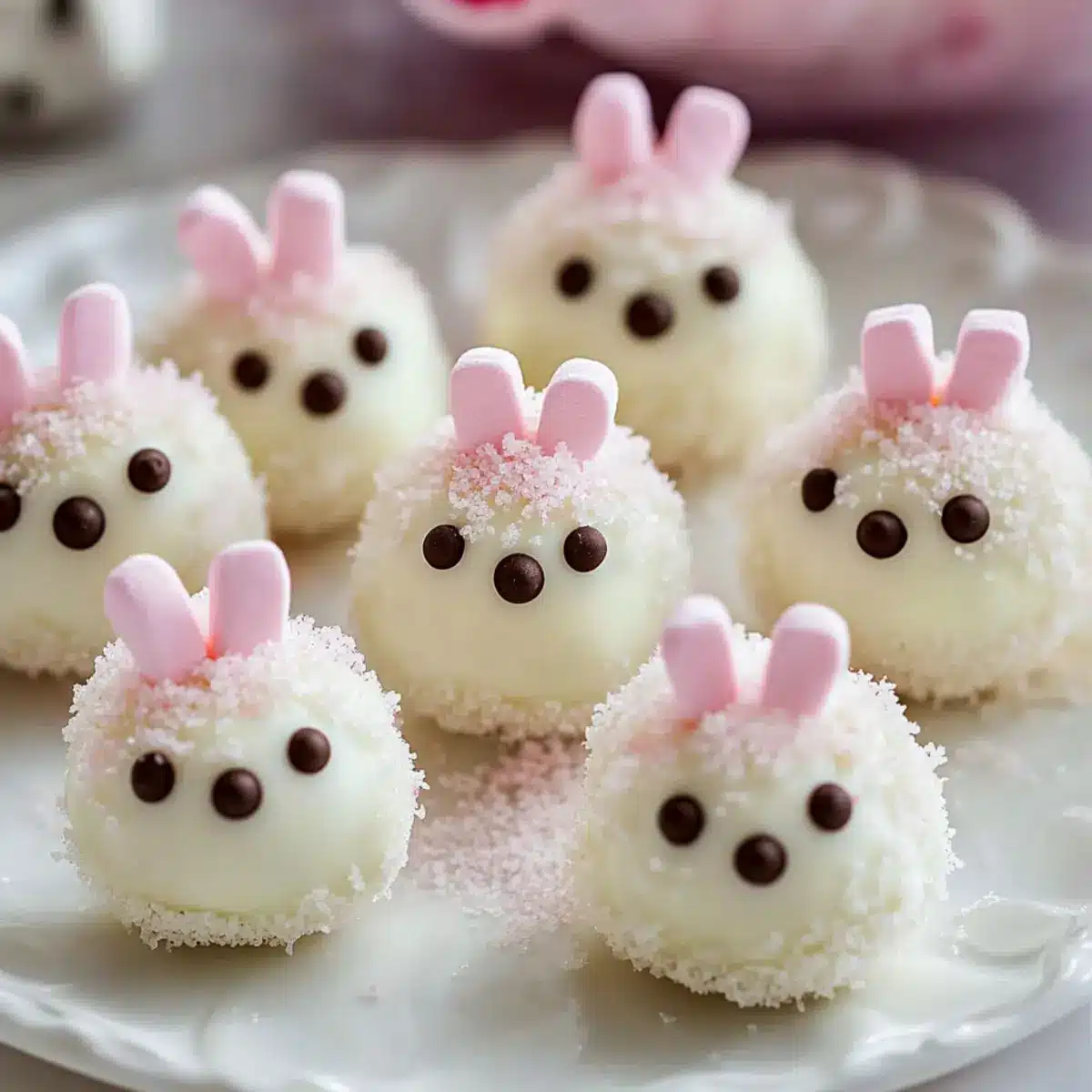 While the chocolate coating is still wet, it’s time to add the decorations. For bunny ears, cut mini marshmallows in half and dip the sticky side into pink sugar. Press these marshmallow halves gently onto the top of each coated ball. For the facial features, melt some black candy melts or use an edible marker to draw on cute eyes and a nose. Get creative to give each bunny its own personality!