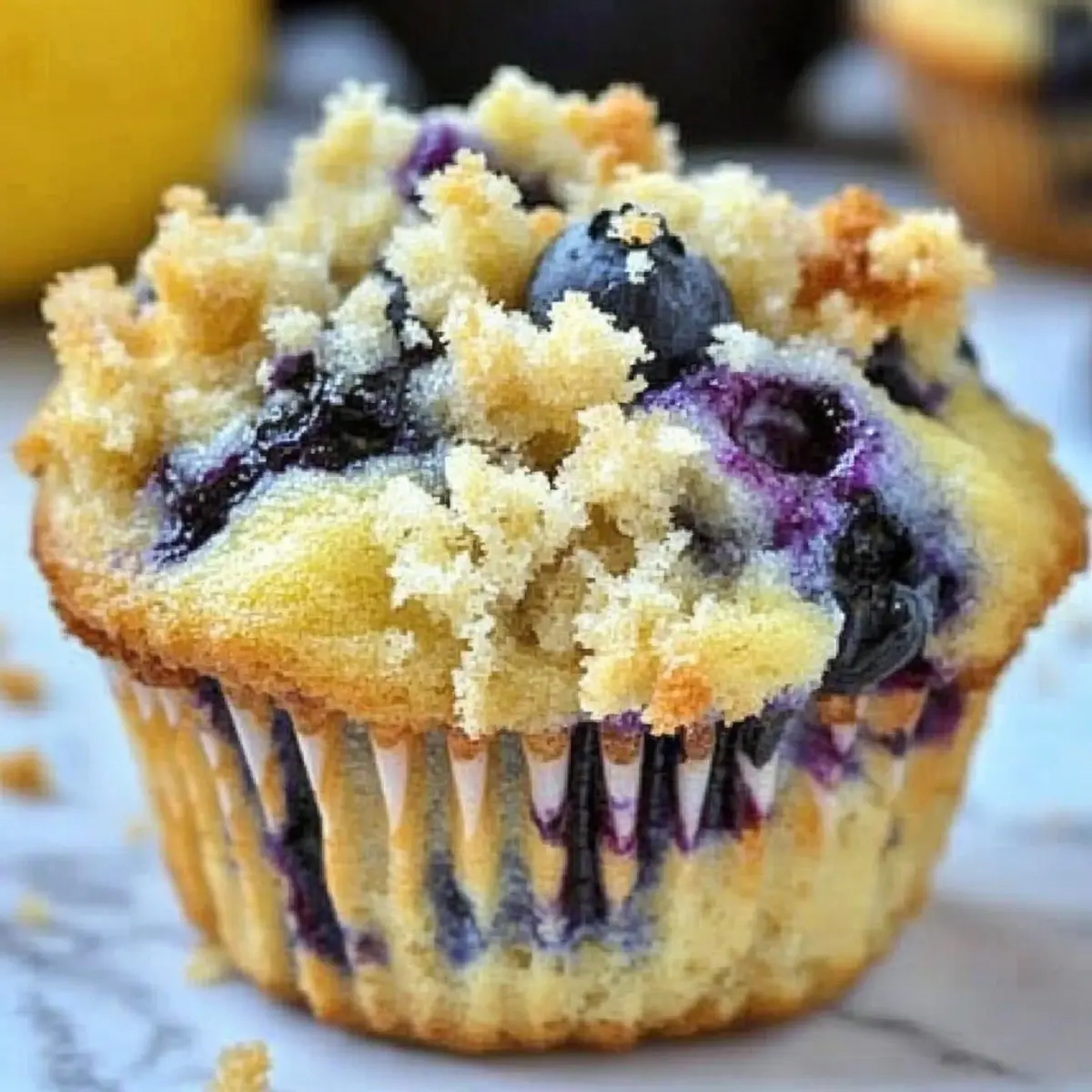 Moist Lemon Blueberry Muffins with a Crunchy Streusel Topping
