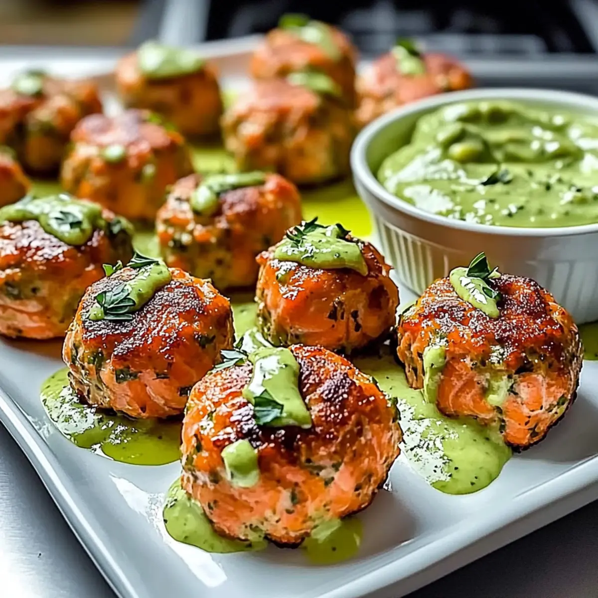 Baked Salmon Meatballs with Creamy Avocado Sauce Delight