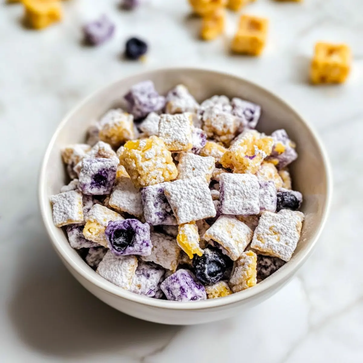 Blueberry Lemon Cheesecake Puppy Chow for a Fresh Summer Snack