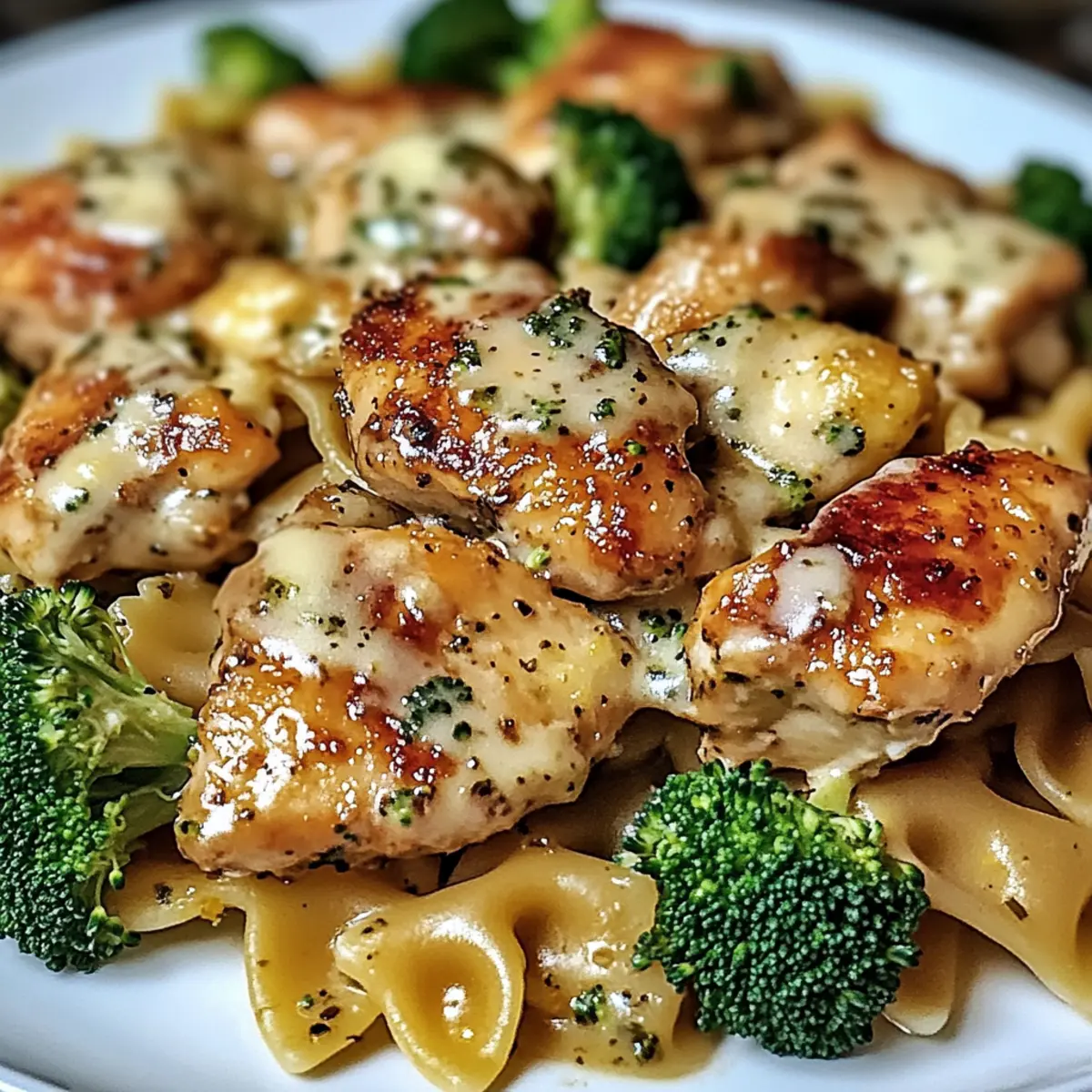 - Add drained pasta and broccoli along with sliced chicken to the skillet. Toss gently and stir in reserved pasta water until sauce reaches desired consistency. Mix in Parmesan cheese until creamy.
