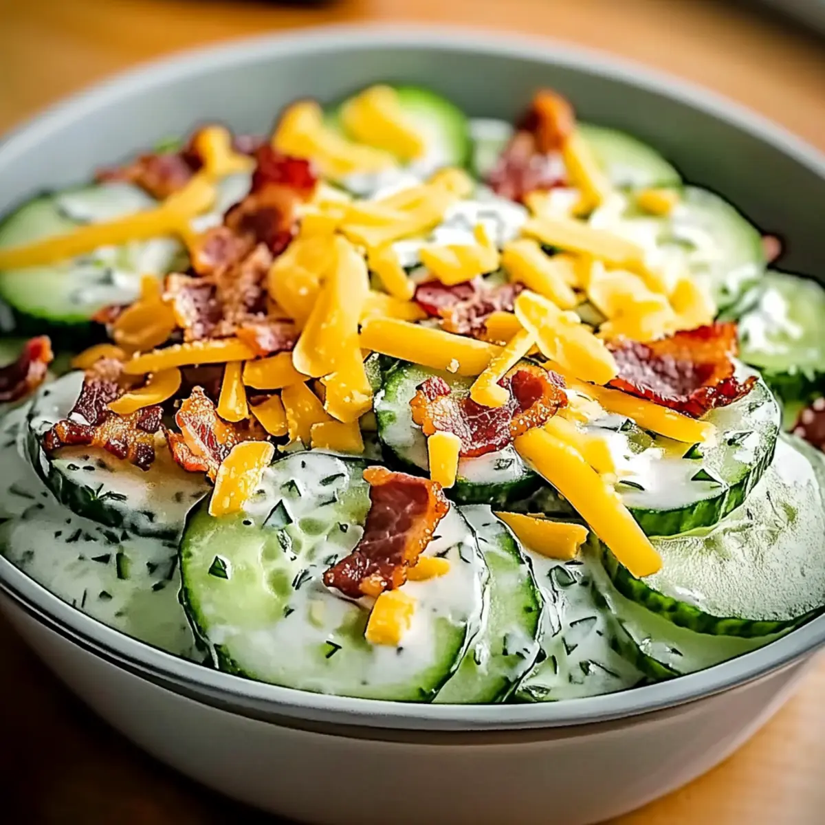 With these simple yet flavorful ingredients, you’re just a step away from creating the ultimate Creamy Cucumber Salad with Bacon and Cheese!