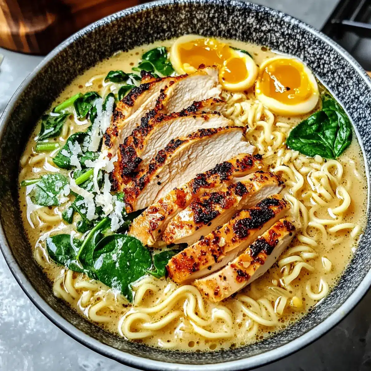 Absolutely! This creamy garlic chicken ramen can be made gluten-free by substituting regular soy sauce with tamari. If you have dairy sensitivities, you can use coconut milk instead of heavy cream, and nutritional yeast can replace Parmesan cheese for a vegan option. Always check labels to accommodate allergies effectively!