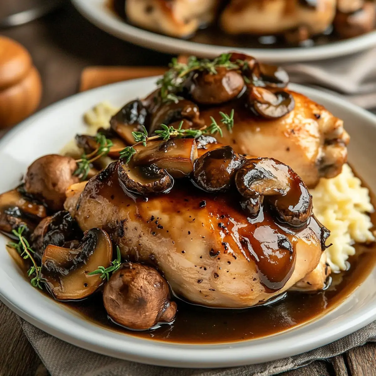 - Return the chicken and mushrooms to the sauce and serve over rice, mashed potatoes, or pasta.