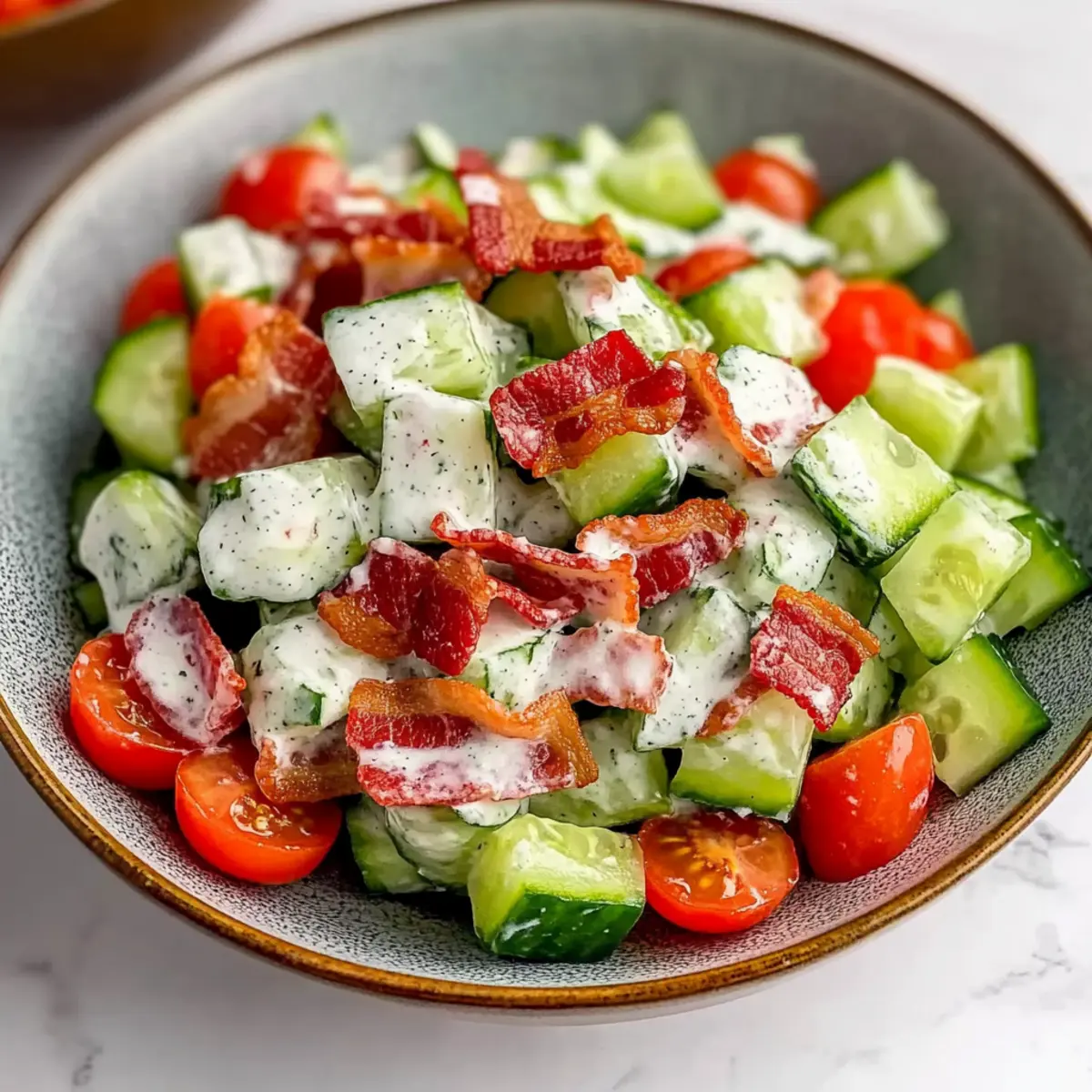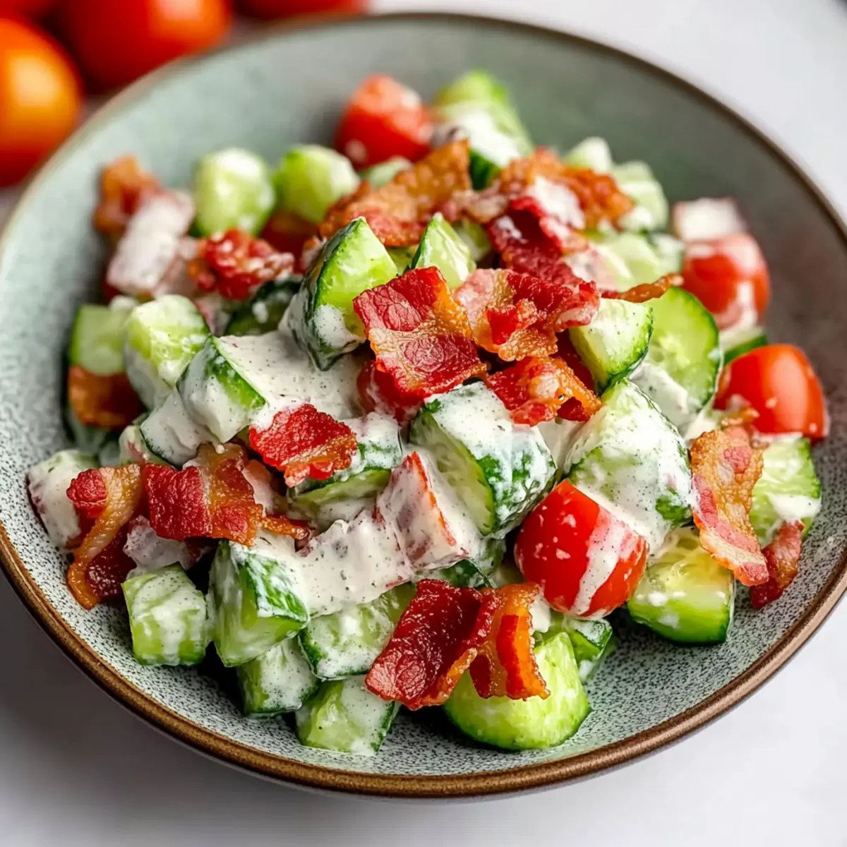 - Assemble Before Serving: If preparing in advance, keep the cucumbers, tomatoes, bacon, and dressing separate until just before serving. This ensures each ingredient maintains its integrity.