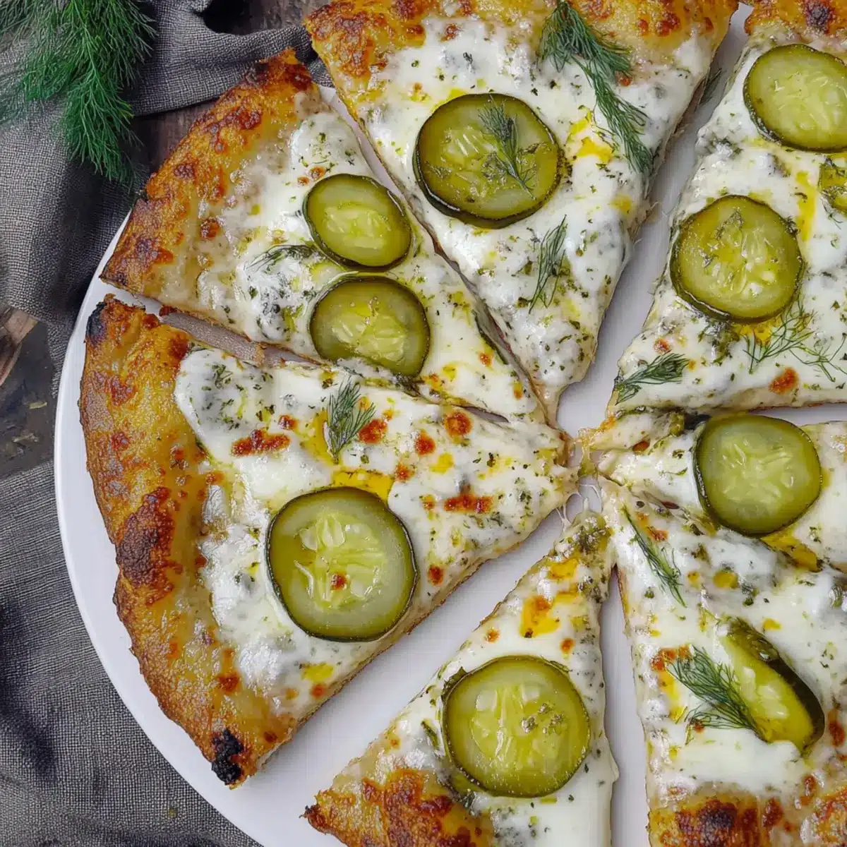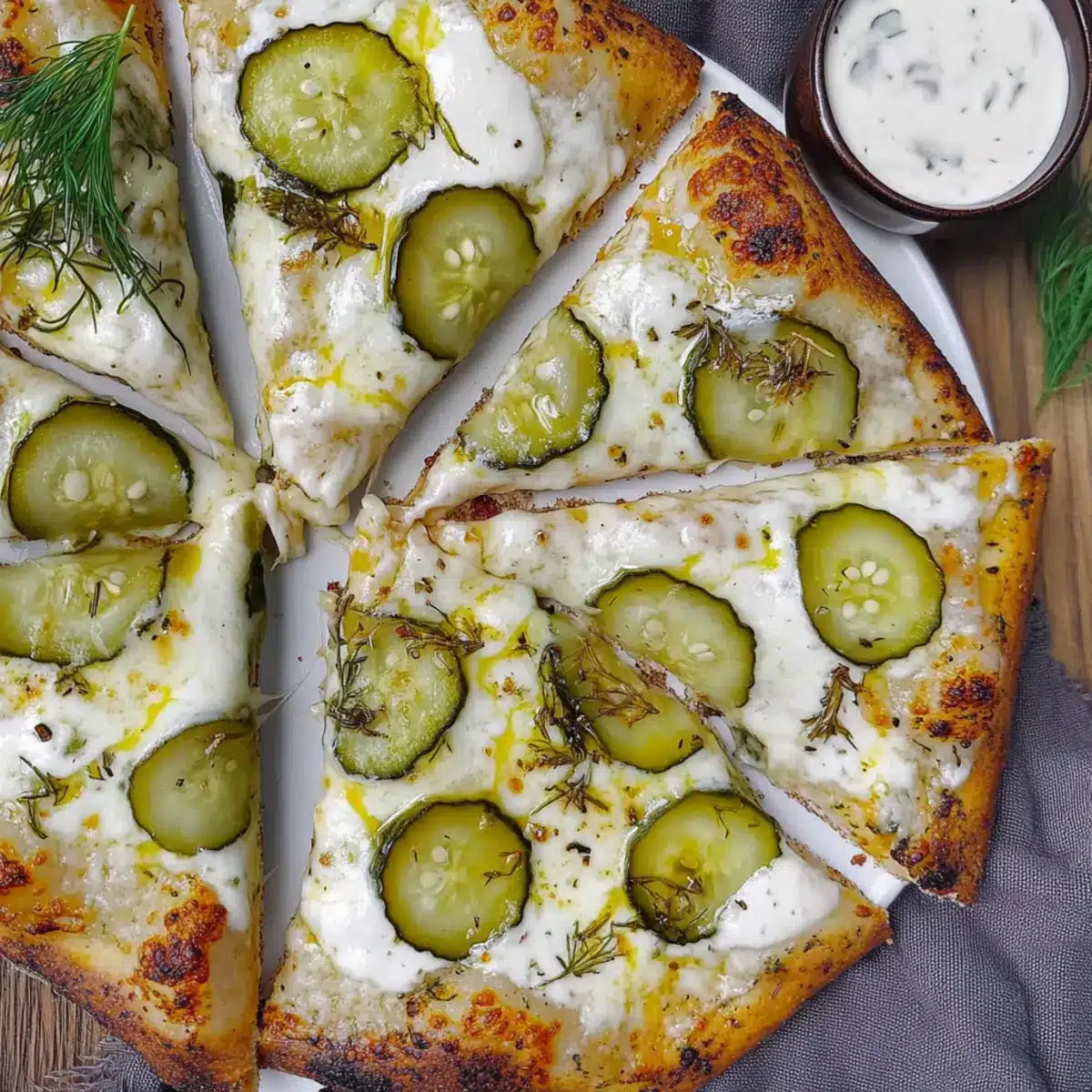 As I reached into the oven, the aroma of golden crust and savory garlic wafted through the kitchen—a true delight for any foodie. This Dill Pickle and Garlic Pizza is my go-to for those nights when I crave comfort without the fuss of takeout. With a homemade dill-laced crust and a creamy garlic white sauce, it marries cheesy goodness with a tangy crunch, making it not just quick and easy, but also a guaranteed crowd-pleaser. Whether you’re a pickle enthusiast or simply looking for a fun twist on traditional pizza, this recipe has something for everyone. Are you ready to reinvent your pizza night?
