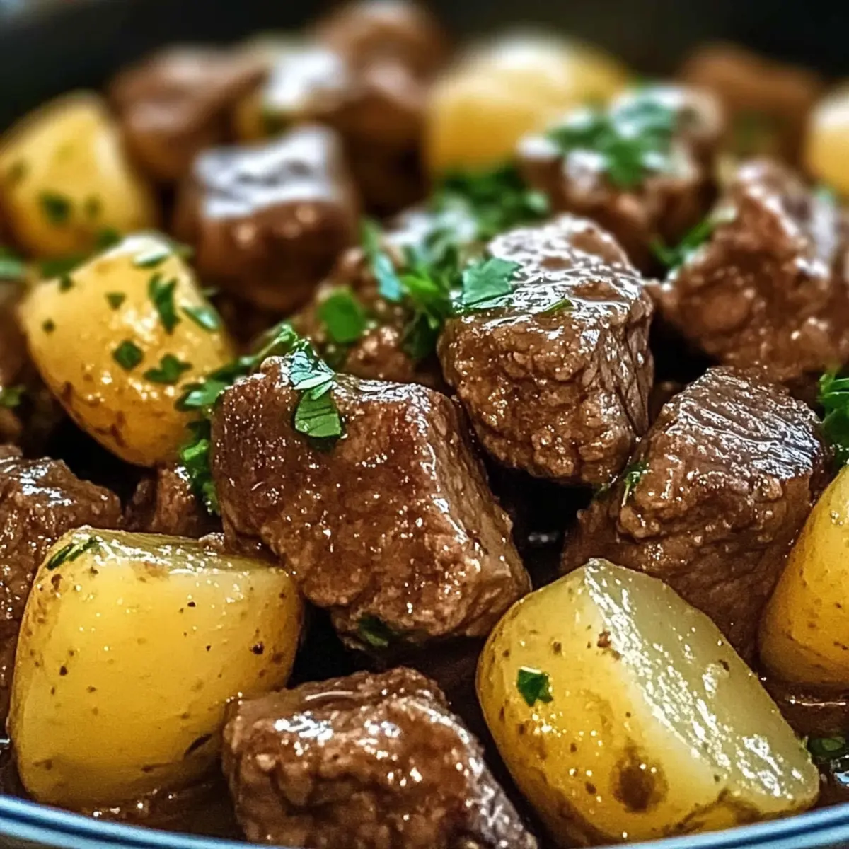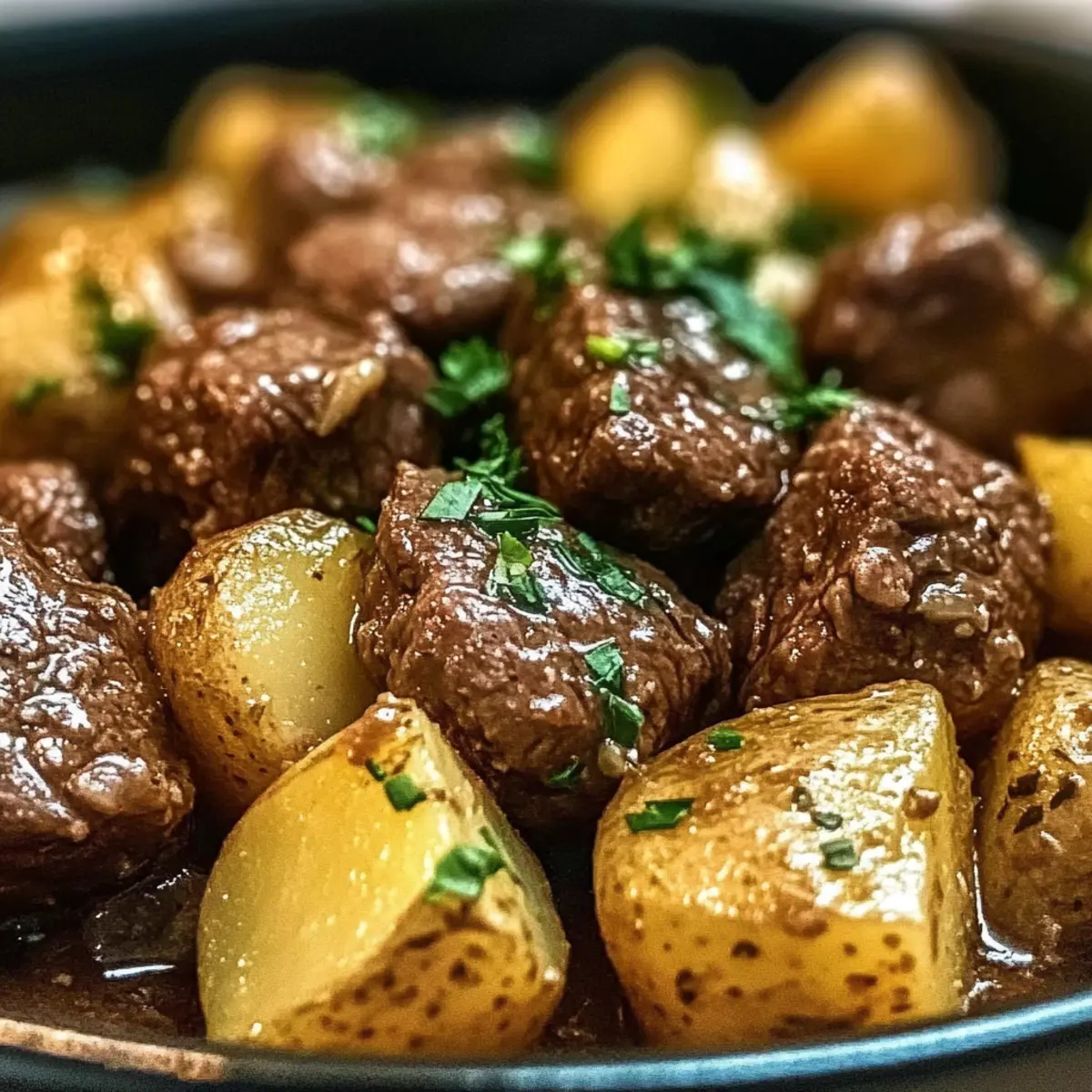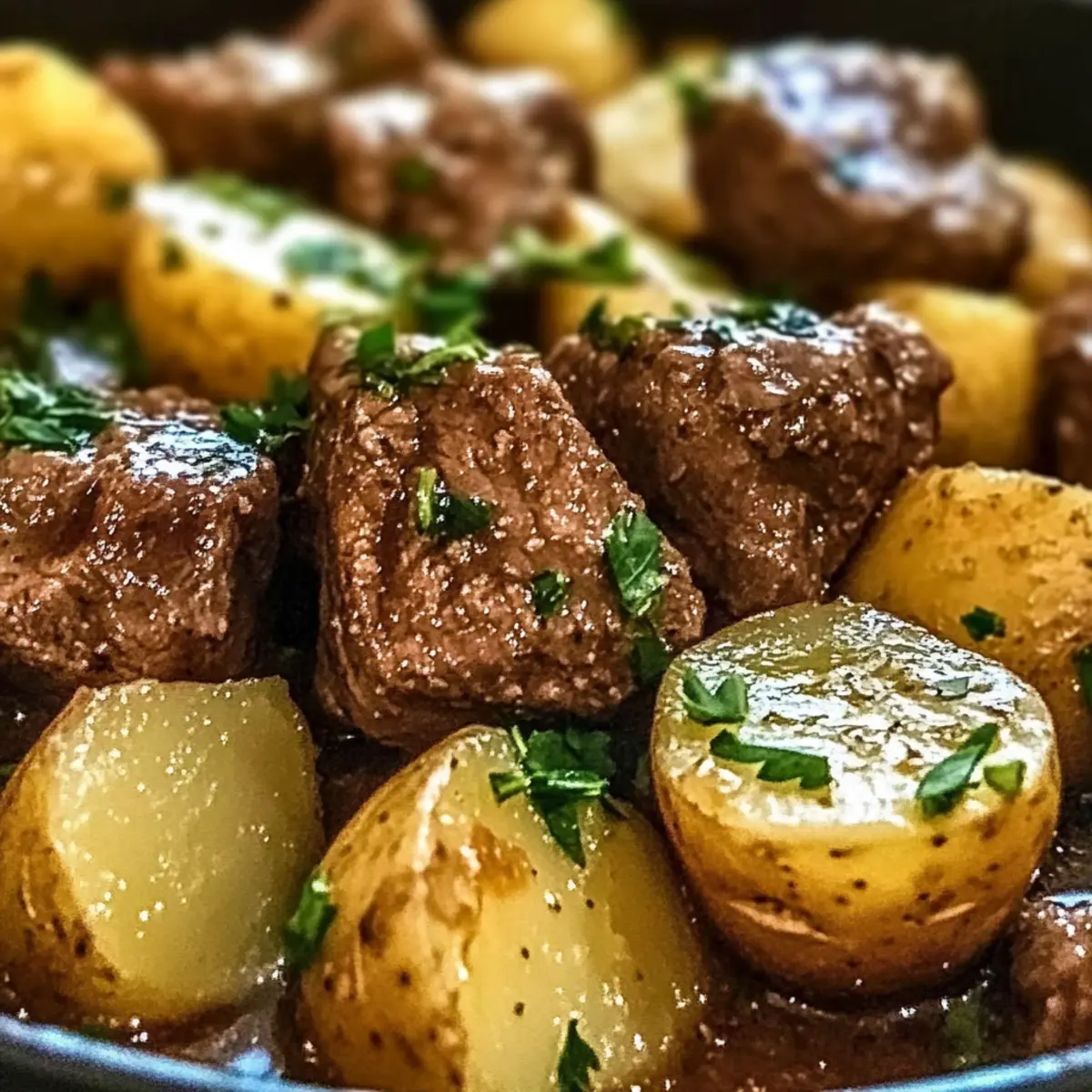 Enjoy crafting these mouthwatering Garlic Butter Beef Bites & Potatoes for an easy yet satisfying home-cooked meal!