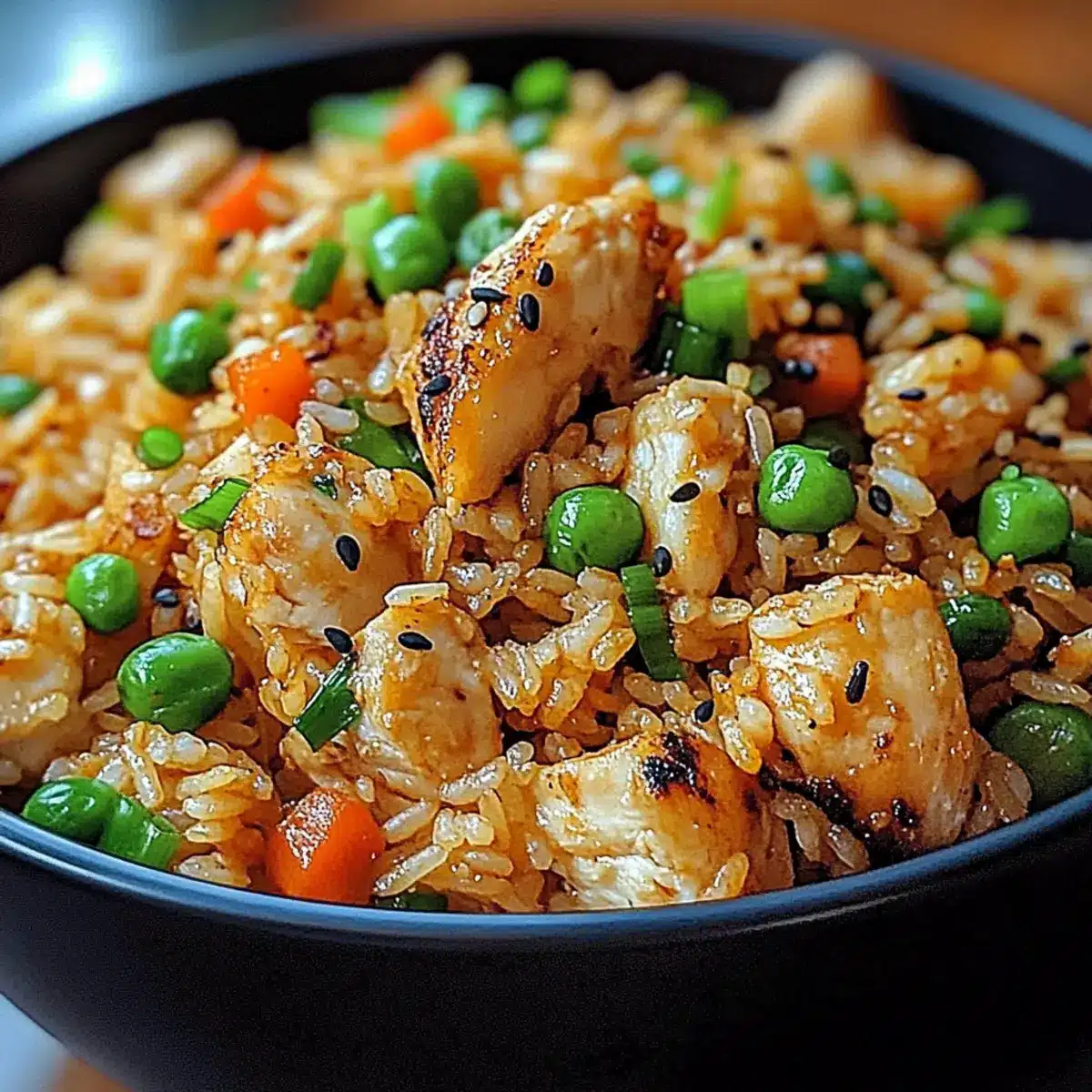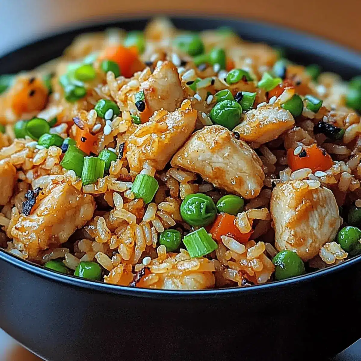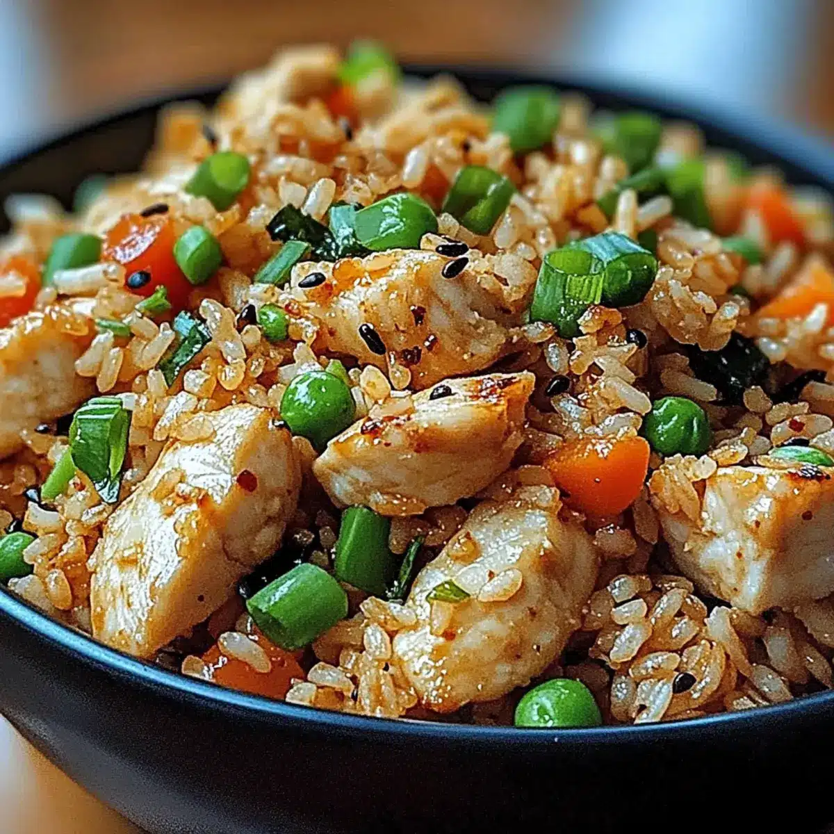 Finally, once everything is perfectly combined and heated, remove the skillet from the heat. Serve your Garlic Chicken Fried Rice hot, garnished with freshly chopped green onions and a sprinkle of sesame seeds for added flavor and texture. Enjoy your nourishing meal while it’s warm!