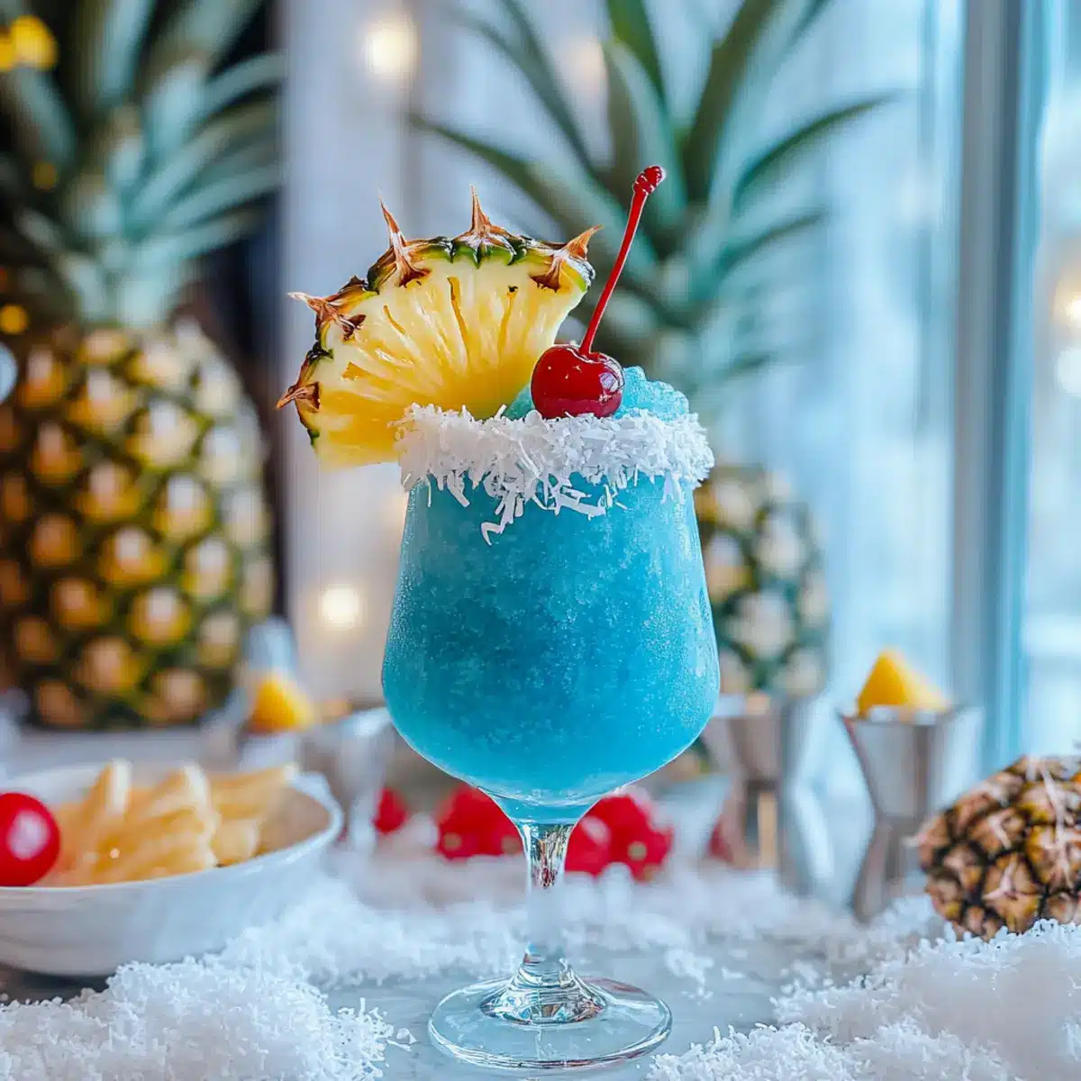 The Jack Frost Cocktail is perfect for busy home cooks looking to save time while still impressing their guests! You can pre-measure all the liquid ingredients—vodka, blue curaçao, cream of coconut, and pineapple juice—up to 24 hours in advance. Simply store them in an airtight container in the refrigerator. Additionally, you can prepare the shredded coconut rim by placing it in a small bowl ahead of time. When it’s time to serve, blend the pre-measured ingredients with ice and garnish as instructed. This way, you’ll have a delicious, slushy cocktail ready to delight your friends and family with minimum effort!