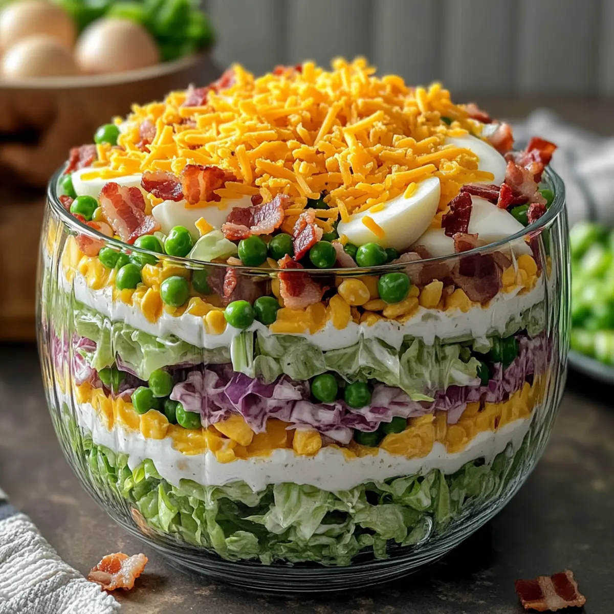 Vibrant layers: Each ingredient in the Kraft 7 Layer Salad adds not only a pop of color but also a distinct flavor, making it visually and gastronomically pleasing.