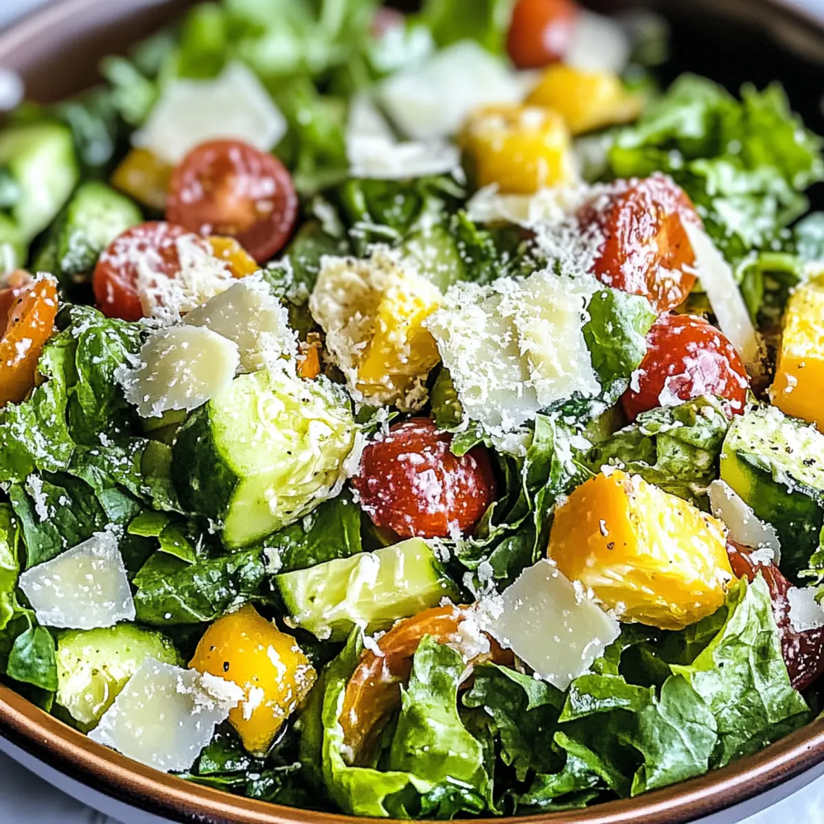 “Is it possible to enjoy a salad that’s both satisfying and refreshing?” I found myself pondering this as I prepared my latest kitchen experiment: a Colorful Parmesan Chopped Salad. This vibrant dish brings together crisp vegetables, savory Parmesan cheese, and a tangy vinaigrette, inviting you to savor each crunchy bite. What I love most about this adaptable salad is its versatility—whether you’re looking for a light meal or a stunning side dish for gatherings, this recipe has got you covered. Plus, it’s a breeze to make ahead, allowing for stress-free meal prep. Trust me; your taste buds will rejoice with each forkful! Curious to see how you can customize your own version? Let’s dive into the details!
