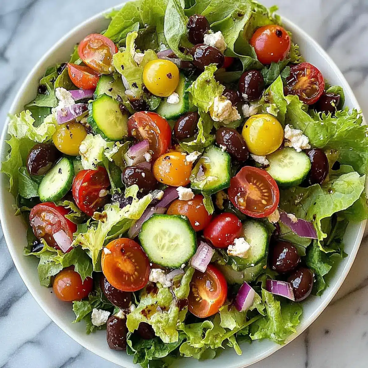 Yes, it’s important! This salad is naturally gluten-free and can easily be made vegan by omitting feta cheese. If you’re concerned about allergies, check for olive varieties that are packed without added preservatives. Always double-check ingredient labels to ensure they meet your dietary needs.