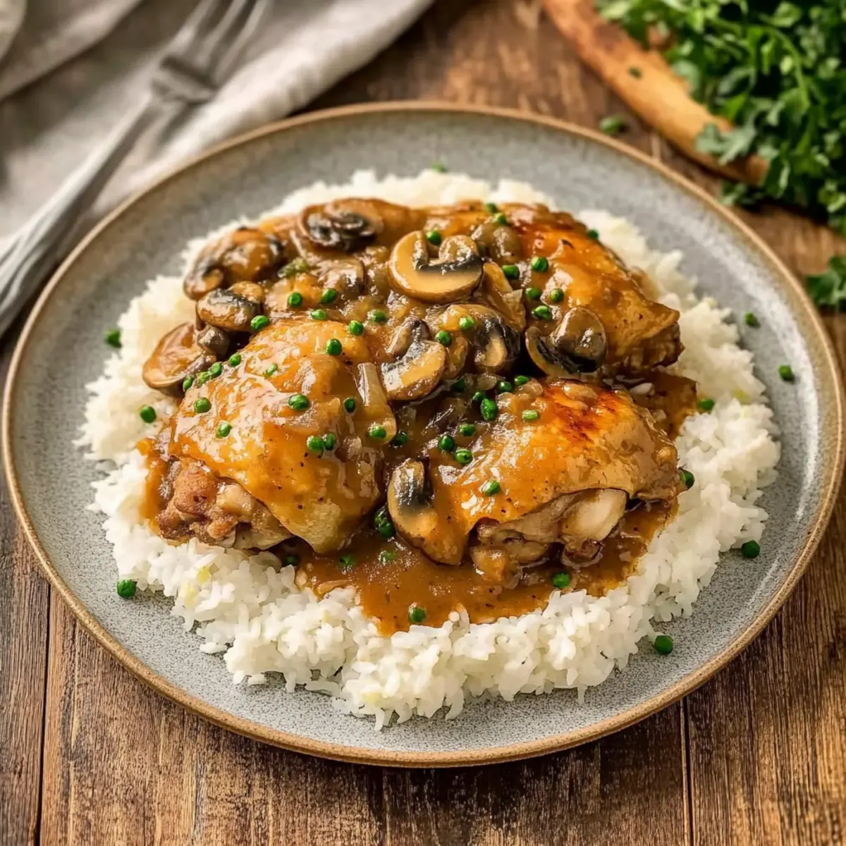 - Serve Up the Comfort: Serve Smothered Chicken over the cooked rice and garnish with fresh parsley.