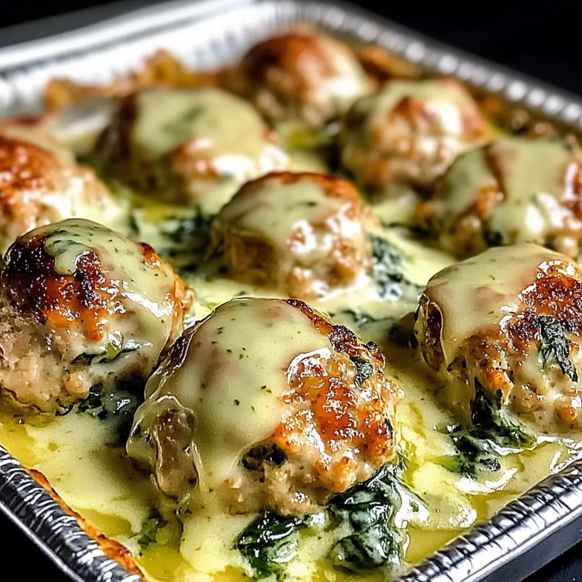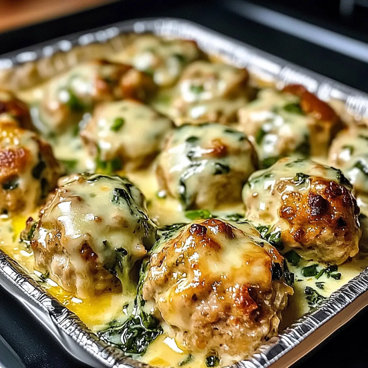 Southern Baked Chicken Ricotta Meatballs in Spinach Alfredo Sauce